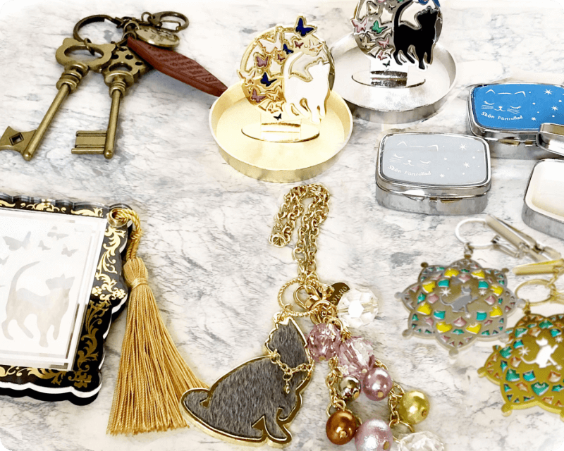 猫モチーフをメインに色々な素材を駆使したエレガントな雑貨コレクションです。